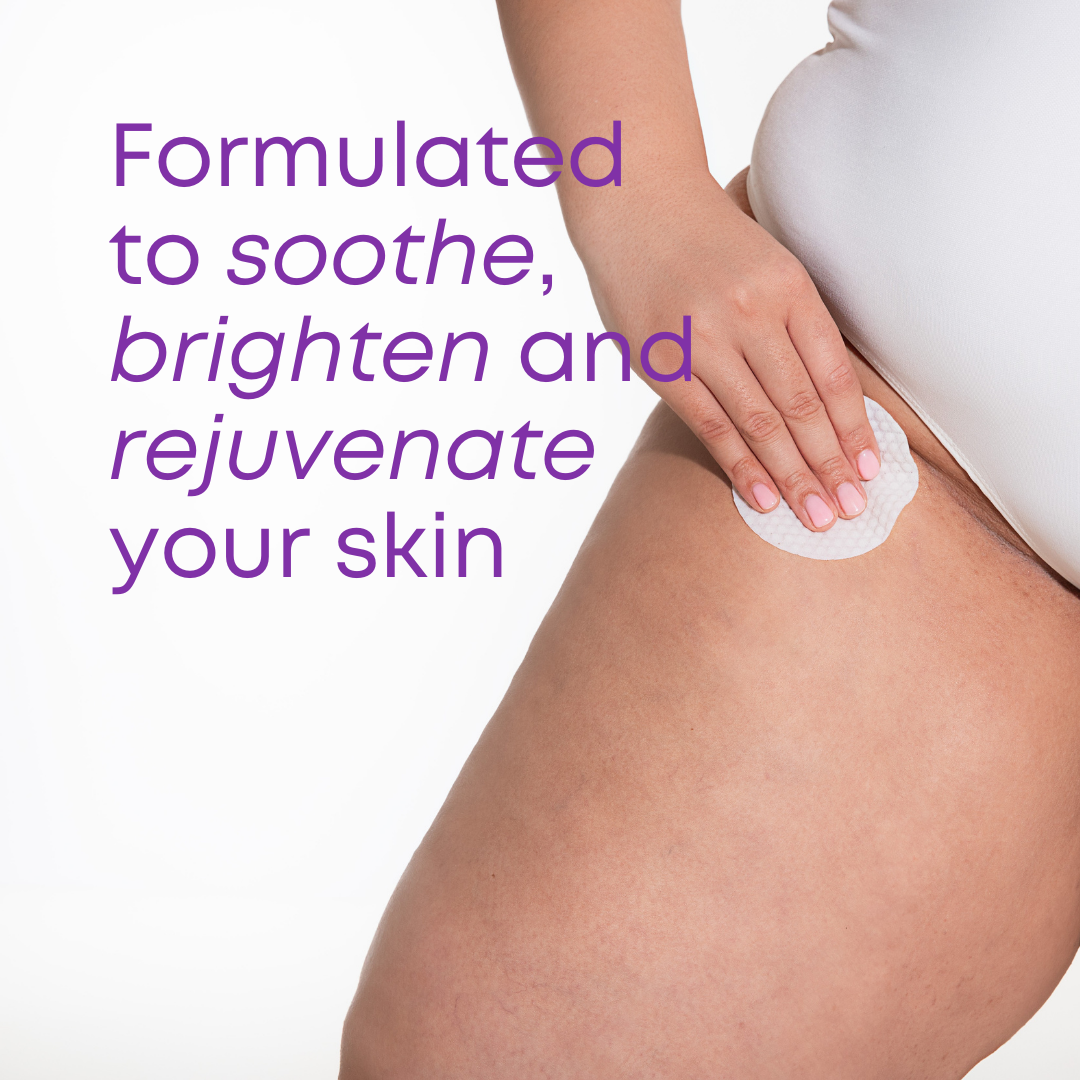 These large pads are loaded with Tranexamic Acid, AHAs, and BHAs, making them safe and effective for the bikini line, underarms, and the entire body.